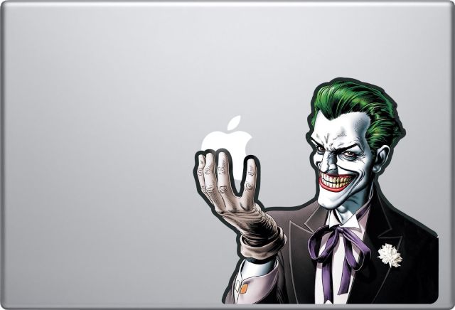 As seen on TV! Apple’s “Stickers” ad celebrates the myriad ways users decorate their beloved laptops. If the Joker isn’t your style, you can find just about any design you can think of, from Pikachu to Winnie the Pooh.