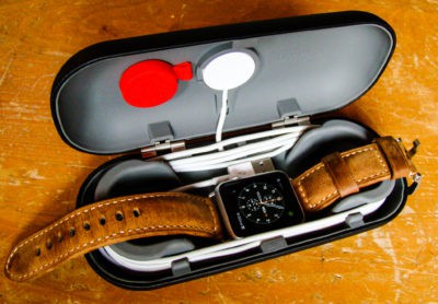 TimePorter holds your charging cable, an extra Watch band, your USB charger and more in a neatly designed, silicone-lined case.