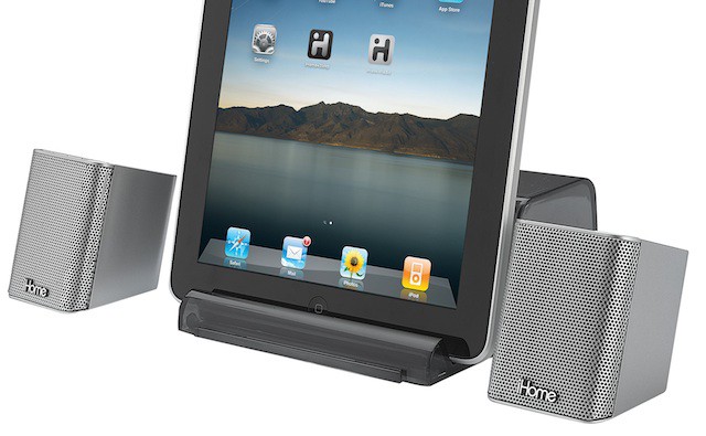 We think this is pretty cool — the iHome iDM15 ($99) is a set of Bluetooth-equipped stereo speakers that include a microphone so they can be used as a speakerphone.