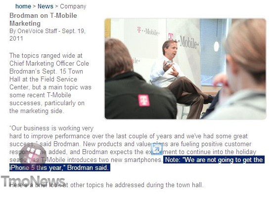 However, in a quote from T-Mobile’s Chief Marketing Officer Cole Broadman, T-Mobile will not get the iPhone 5 this year.
