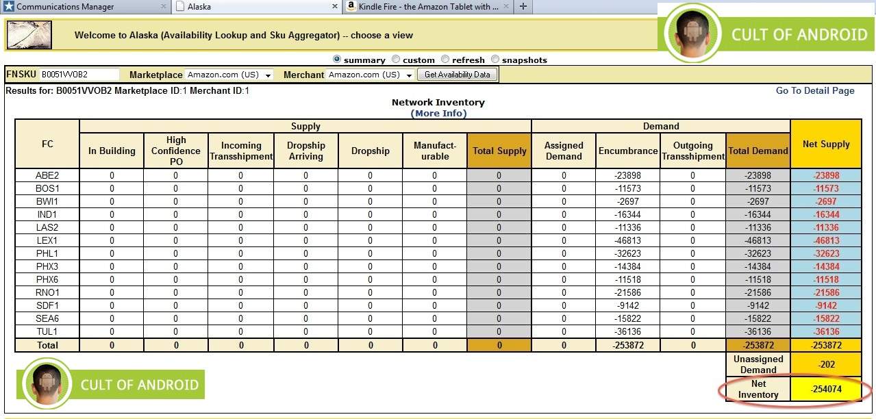 A verified source within the Seattle based online retail giant has provided Cult of Android with exclusive screenshots of Amazon’s internal inventory management system Alaska (Availability Lookup and SKU Aggregator).