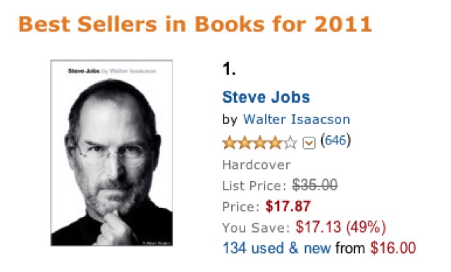 2 responses to “Walter’s Isaacson’s Steve Jobs Biography Is Amazon’s Best-Selling Book Of 2011”