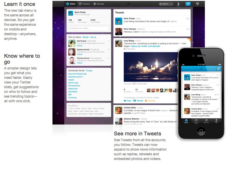 Today, Twitter announced a new design for the popular micro-blogging site that will start rolling out over the next couple of weeks, which they hope will make it easier than ever to connect with other users and discover great new content.