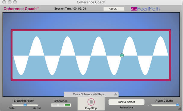 The goal of the gadget is to coach you into a zone called “coherence,” defined as a highly efficient state where all the systems of the body work together in harmony.  A breathing pacer gets you going steady, while you concentrate on pleasant memories and feelings centered around your heart.