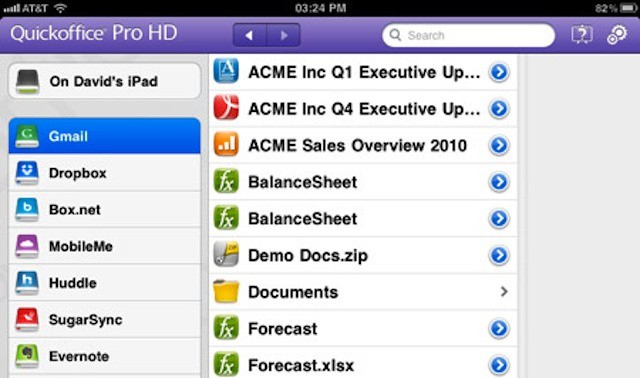 - The Wi-Fi sharing feature that let’s users transfer files between Quickoffice on the iPad and their Mac or PC