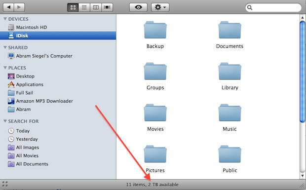 On Monday, reader Abram Siegel’s iDisk showed 2TB of available storage. Yeah, that’s right — terabytes. The default iDisk storage is 20 gigabytes.