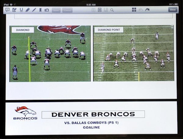 The Broncos aren’t the first team to make the switch. That would be the Tampa Bay Buccaneers, who announced a plan to swap their playbooks for iPads at the start of last season. The Baltimore Ravens also chose the iPad over paper playbooks last year.
