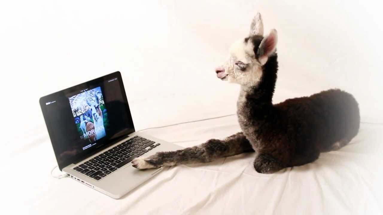 The title really says it all: Flower, a baby alpaca over at the Insight Ranch in Southern California, spends her time making farting sounds with her mouth, trembling almost faster than the speed of video and scrolling through photos on her MacBook Pro.