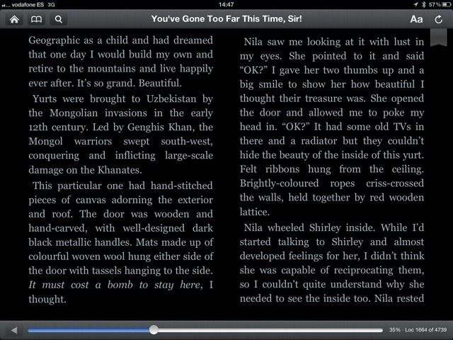 And for the record, the Kindle interface on the iPad is (in my opinion of course) VASTLY superior to the iBooks interface. iBooks is cluttered, messy, clumsy, and a little ugly. Kindle is sleek, plain, and focuses on 1 thing: the text.