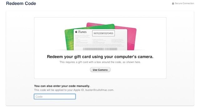 This is the greatest feature Apple has ever invented. No longer shall consumers be subjected to really long funky alpha-numerical gift codes as we hunt-and-peck our way through entering the code into our computer in exchange for some free iTunes bucks.