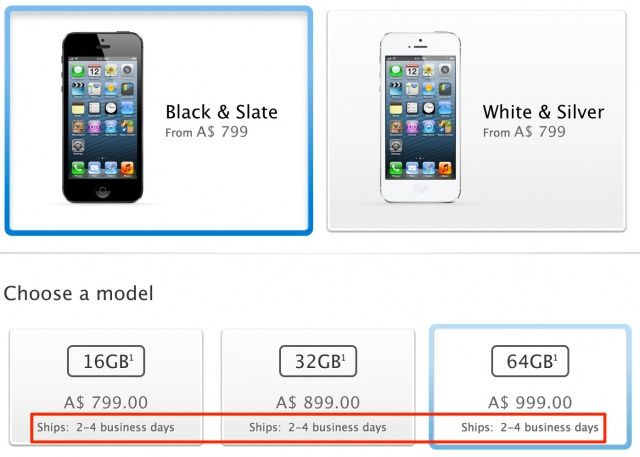 One response to “iPhone 5 Shipping Times Improve Again – Now Stand At Just 2-4 Business Days”