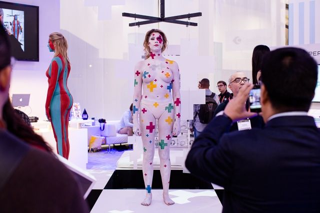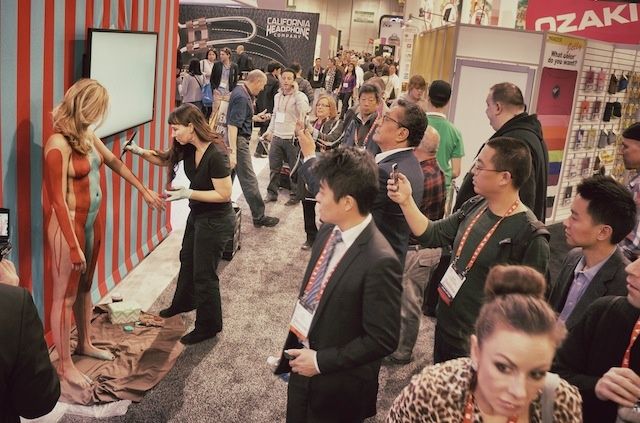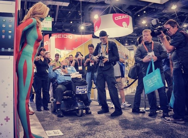 Hyper’s booth is the most interesting place to see CES attendees interact with products. Hordes of men skitter along the outer edges of the Hyper booth, catching glances of the women and their body paint. A few will stop and take a picture, and then more decide to join in, until a growing mob now clog the walkways, preventing everyone else from getting to other destinations.