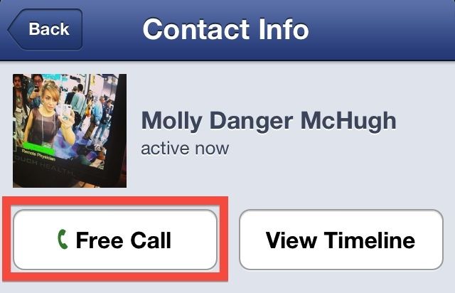 To use Free Call, just install the Facebook Messenger app. Go to your friends list, tap on the person you want to call, then hit the info button in the upper righthand corner. On the contact info screen you should see an option for “Free Call.” Tapping on Free Call will initiate a call using VOIP, and your friend will get a notification on their iPhone that you’re trying to ring them.