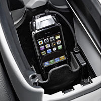 Placed in the Mercedes’ onboard cradle, the iPhone’s music and phone functions can be controlled with the help of multifunction steering wheel controls, while the vehicle’s display indicates phone status, music functions, etc. The cradle features automatic recharging as well as increased reception with the help of the vehicle’s antenna.