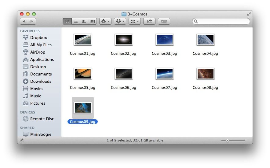 Once you’ve gotten the Default Collections folder open, you can open any one of the image category folders and duplicate files and move the copies to your desktop or what have you. You can also drag any one of the collection folders to your Desktop & Screen Saver System Preferences pane to use as wallpapers in the future.