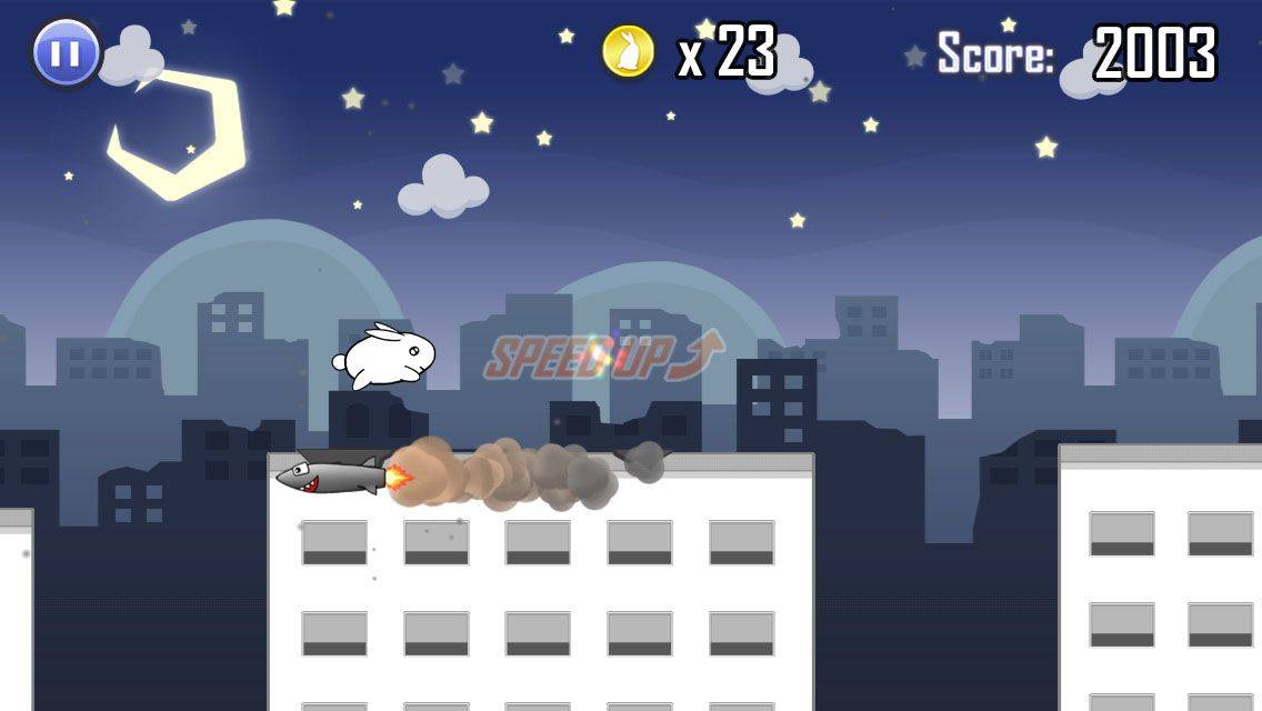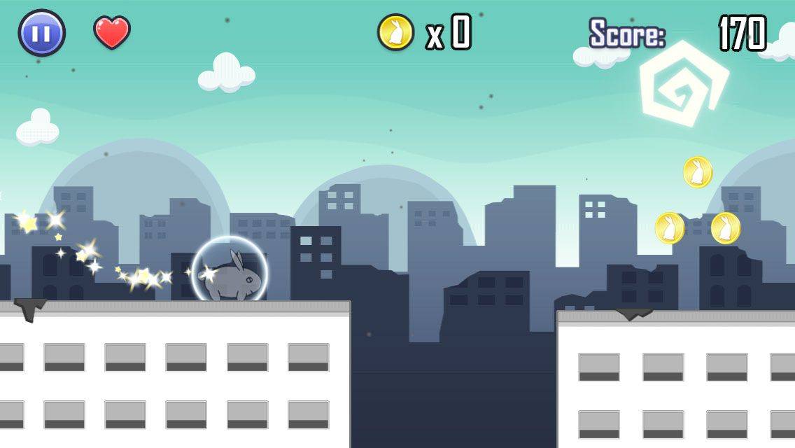 You play as, well, the last adorable bunny in a world overrun by those grumpy stone blocks from Super Mario Bros. games and missiles. You jump from building to building trying to avoid bombs and pitfalls. Unlike Canabalt, you have control over the speed at which the bunny runs. By tilting your phone to the right or left, you can increase or decrease his movement to make jumping more precise. This is very helpful when blocks fall just outside the rabbit’s jump distance which will ultimately lead you to running into them unless you’re moving at a slower speed.