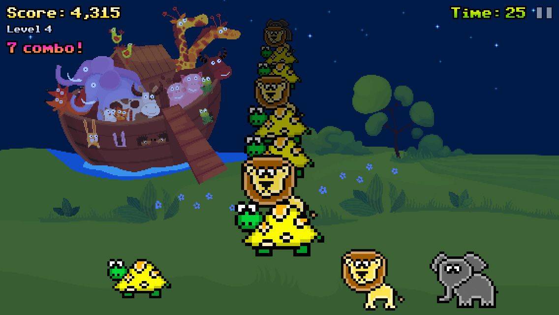 The goal in Ark Saver is to match the next animal in a long line with its pair as quickly as you can. Each level gives you 30 seconds to pair 50 or more sets, and each level introduces more creatures to match. To get the highest score, you’ll need to maintain a combo streak that breaks every time you tap the wrong picture. Luckily, the only harm breaking a combo repeatedly has is decreasing your overall score.