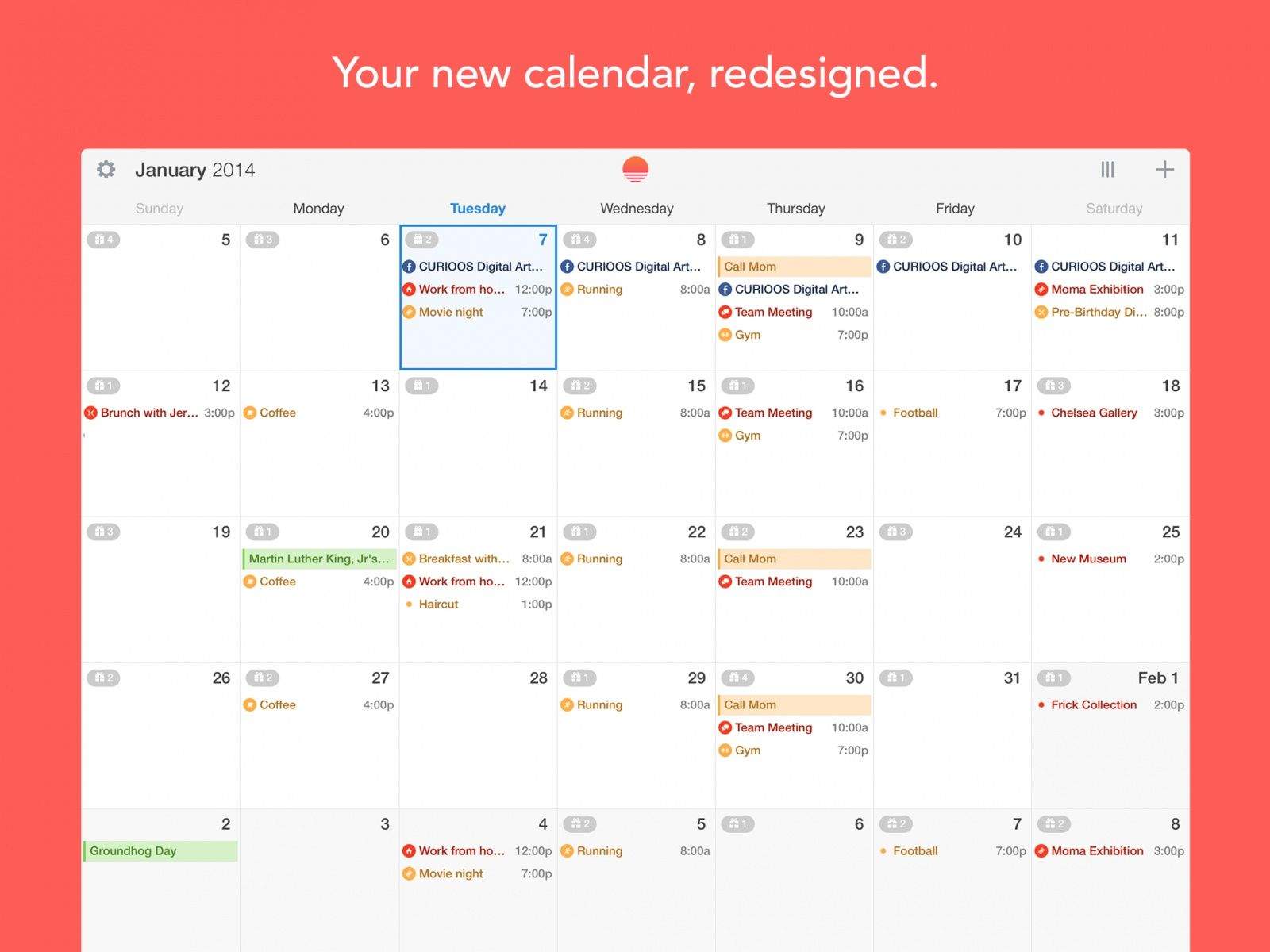 Sunrise is designed to integrate closely with Google Calendar, but it also supports iCloud. It taps into networks like Facebook and LinkedIn to show upcoming events and birthdays. Google Maps shows directions for event locations. Events can be added via nature language (“meet with John for lunch at 2”), Fantastical-style. The design of the app is super clean, and the attention to detail makes it worth checking out.