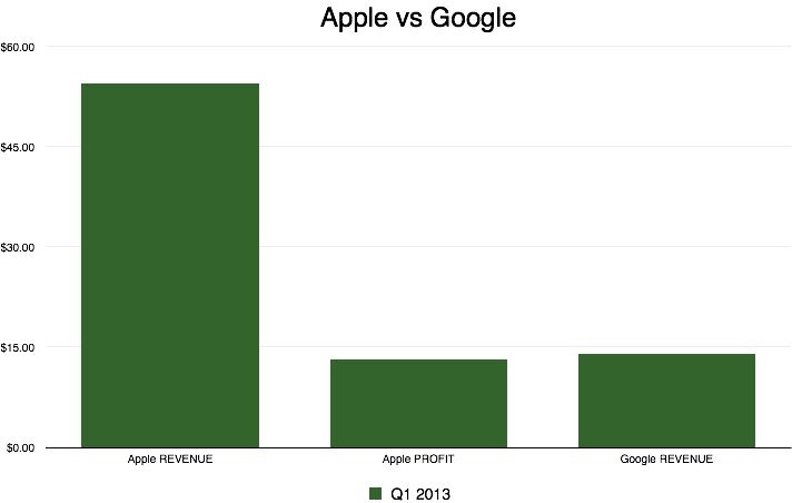 What’s so stunningly intense about the earnings call today is that Apple’s profit is just about as much as Google’s entire revenue. That means Apple takes the same amount of money to the bank that Google makes altogether. That’s pretty amazing.