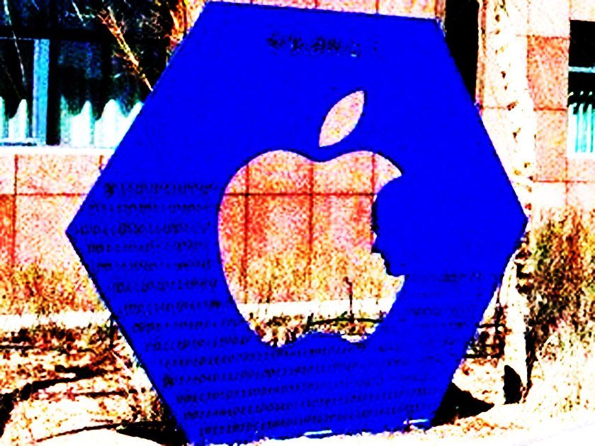 “A series of [colorful] sculptures had been placed in one corner of the yard, apparently united by the theme of apples,” Richter wrote on his blog. “Isaac Newton’s face appeared engraved on one giant, metal fruit – another installation bore the familiar profile of Steve Jobs.”