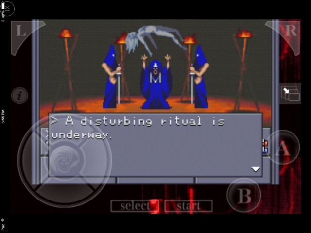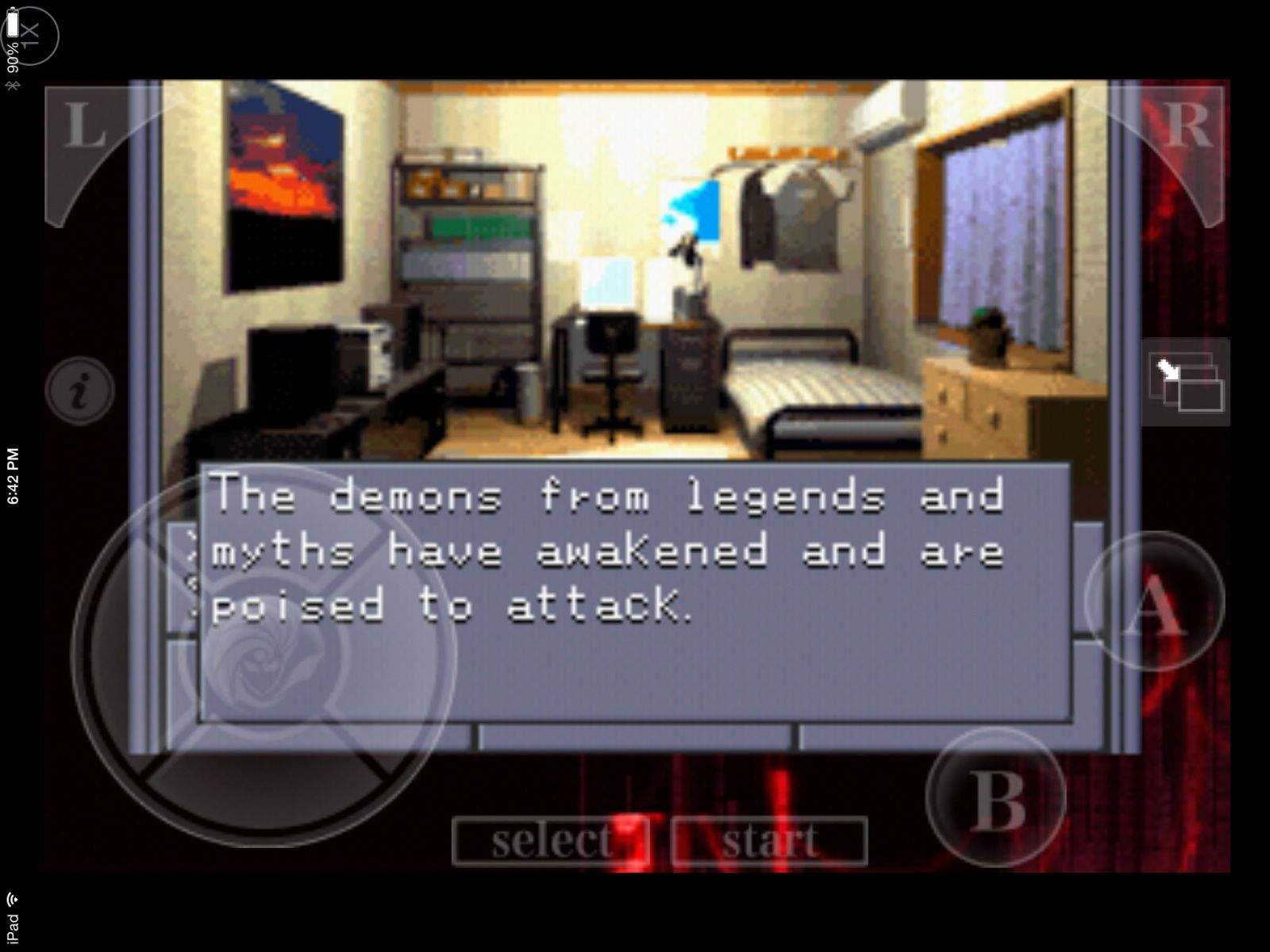 I should warn you now, the iOS version of Shin Megami Tensei is perhaps the most bewildering game you’ll play on your phone. The game world is unforgivingly nondescript, and you navigate it in first person. It’s very easy to get lost indoors and bypass important people and doors until you get the hang of navigating. I recommend you pause briefly before entering any room to see if a nameplate appears — otherwise you’ll be running in circles. Also, Atlus’ strange control panel shell for SMT is a little unwieldy. I played in landscape mode in order to take screenshots, but I highly recommend playing in portrait mode as the interface buttons are smaller, easier to reach, and not covering the game screen.