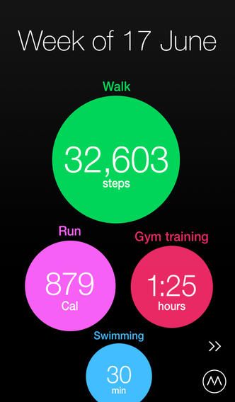 Moves was released on the App Store in January of 2013, and it now has an Android client, web interface, and API for third-party developers. Using the iPhone’s built-in sensors and the M7 co-processor in the 5s, Moves is able to track different kinds of exercise and record where you go throughout the day. Its main interface is composed of moving bubbles that show distance traveled while walking, running, and cycling.