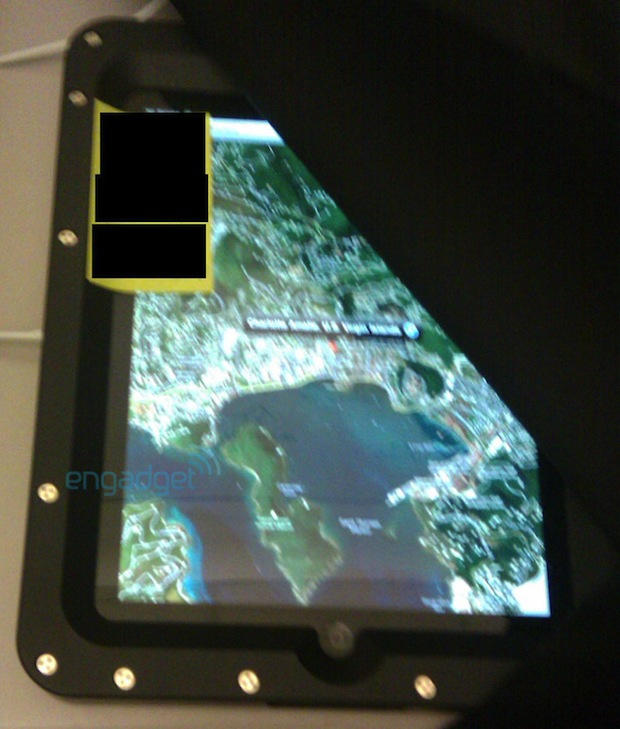 But color us skeptical. The pictures appear to have been sent in anonymously (“Okay, we obviously can’t confirm this…” the post starts). And trying to explain the bolts around the edge, Engadget suggests it has been bolted to the table. Bolted to the table? WTF? Why would it be bolted to a table?