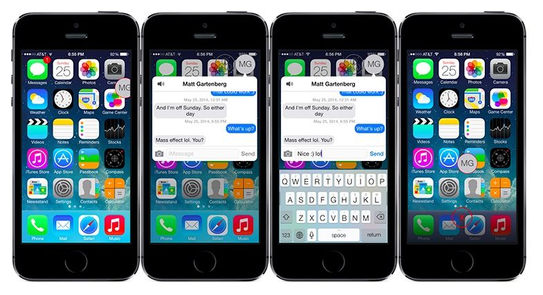 ‘MessageHeads’ is a new jailbreak tweak by iOS developer Ian Burns that does what it says on the tin. After installing the tweak, a head-like bubble will be overlaid on your iPhone or iPad screen every time you get a message from a contact. If you have a picture assigned to the contact, their picture will show; otherwise, it will simply show their first and last initials. To reply, all you need to do is tap the head. If you want to close it, you just drag the chat head to bottom of the display to the red ‘X’. It works with both SMS messages and iMessages.