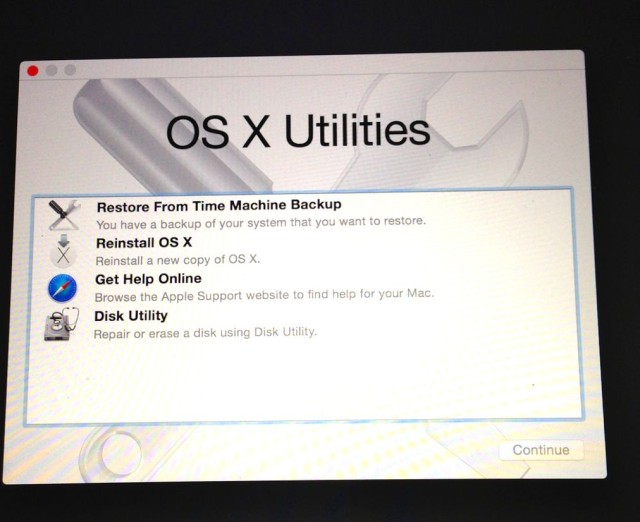 I had no other choice available: I had to do what I feared most and erase my hard drive. I emptied the space where the new OS lived, forcing my laptop to search for a new way to start up. While this might sound like a promising turn of events, it still did not fix the problem. A haunting question mark on a lone folder was all my MacBook’s Retina screen seemed capable of displaying. Using the tips I had found earlier by holding the Command and R keys, I was able to reboot my bare machine to Recovery Mode.
