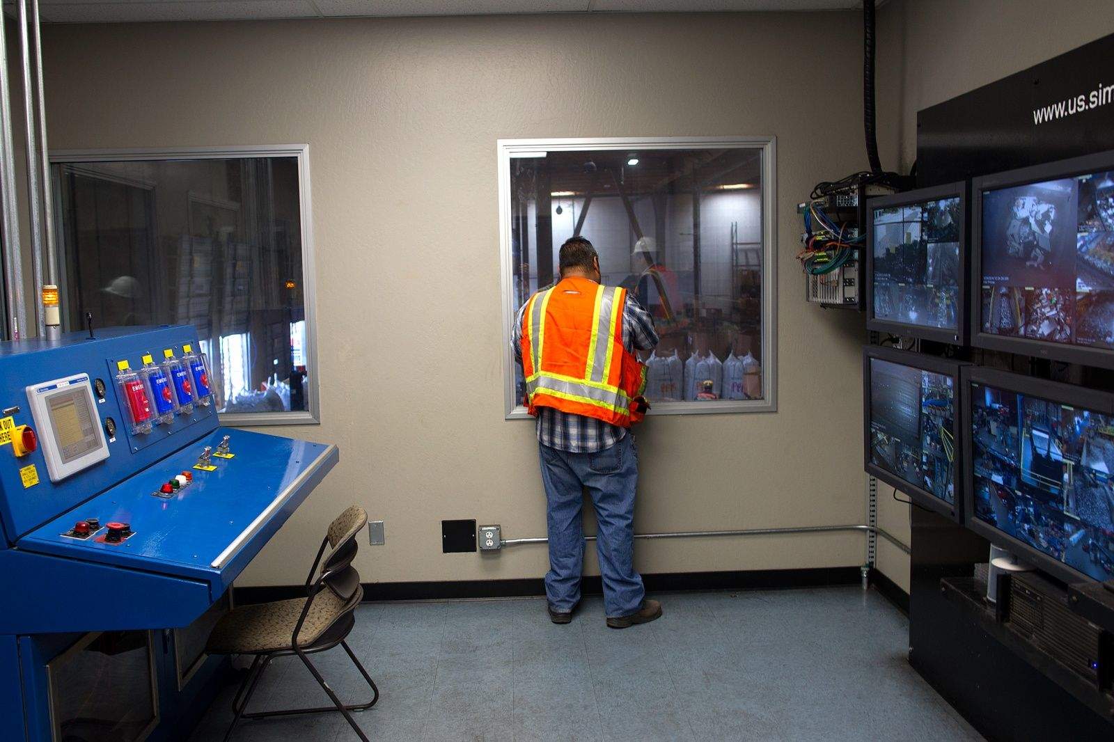 “I’m running it, shredding it, processing it,” Fragoso said from the supervisor’s office, where he watches the line on an array of monitors. “Then getting it in Super Sacks and shipping it out.”