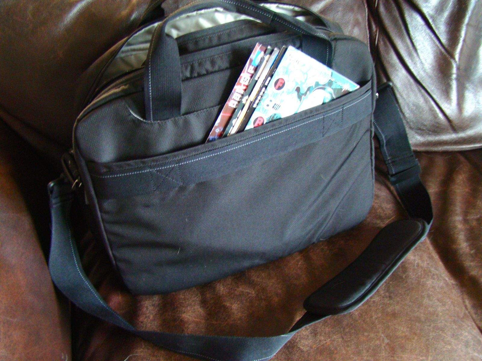 I stuffed as many things as I possibly could into this bag, and still have room for more. It’s perfect for the gaming conferences I go to, where I need to have room to put brochures and the little bits of swag the vendors give out, and still have everything I could possibly need (including a DSLR camera) for the show floor.
