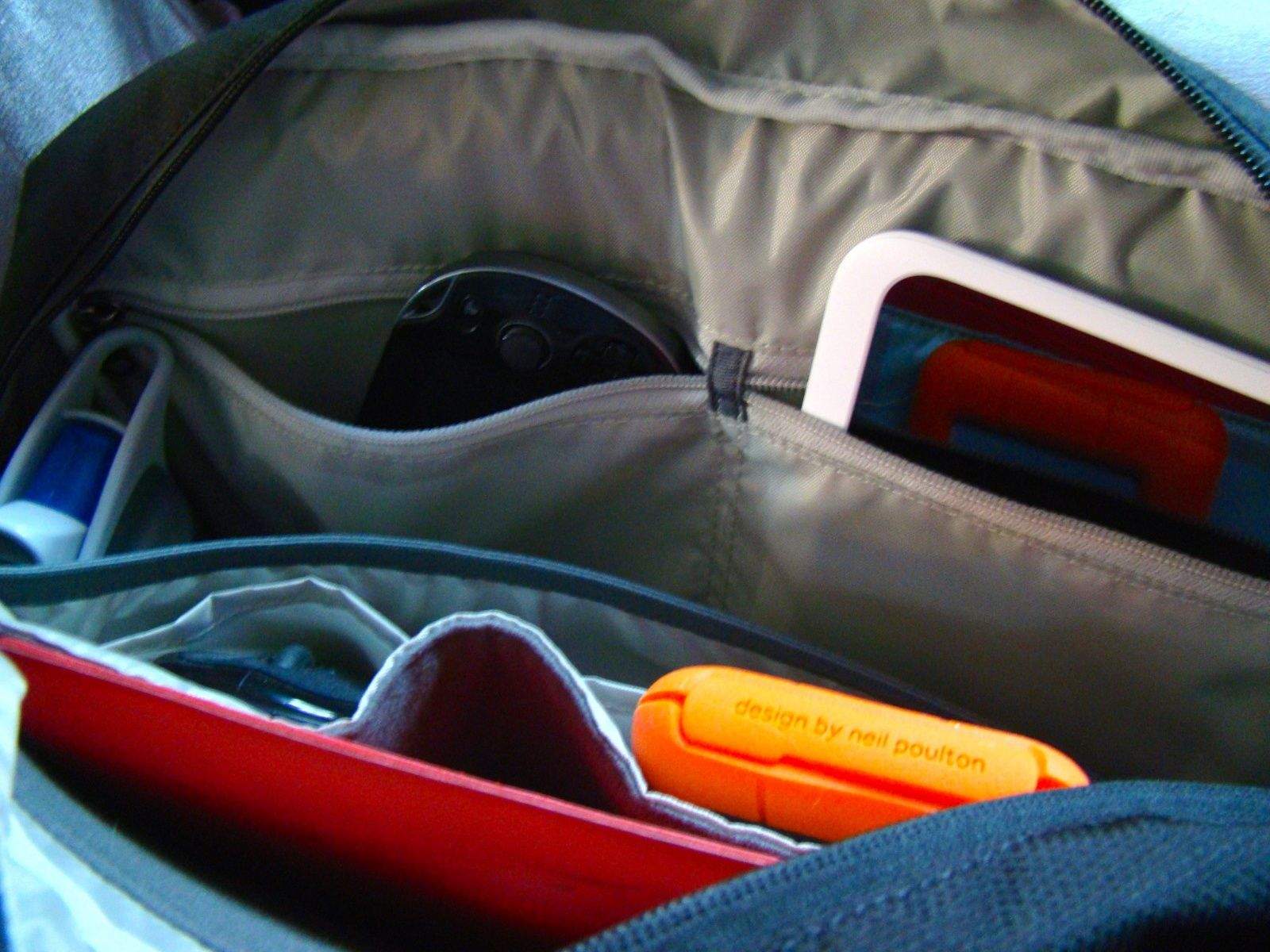 There is a time, however, when you need to have a larger subset of your general kit. You might need that extra battery pack (or two), your MacBook Pro, both your iPads, a couple of backup hard drives, an external keyboard, a gaming mouse, a PlayStation Vita, headphones and (of course) all the associated wires and plugins that these items require. Oh, and maybe a water bottle, a wallet, an iPhone and a set of keys.