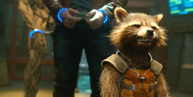 Likewise, Guardians of the Galaxy, which which slams into theaters Thursday night, spins the Marvel Cinematic Universe in a strictly sci-fi direction. Tony Stark’s high-tech creations are similarly futuristic, but his armored suits and various toys exist on present-day Earth. Thor took us to the mystical realm of Asgard, but Guardians of the Galaxy takes us deep into space. The movie’s team of five Marvel Comics heroes — which includes a cybernetically enhanced raccoon named Rocket and a walking, talking tree — looks about as normal as the Star Wars cantina scene.