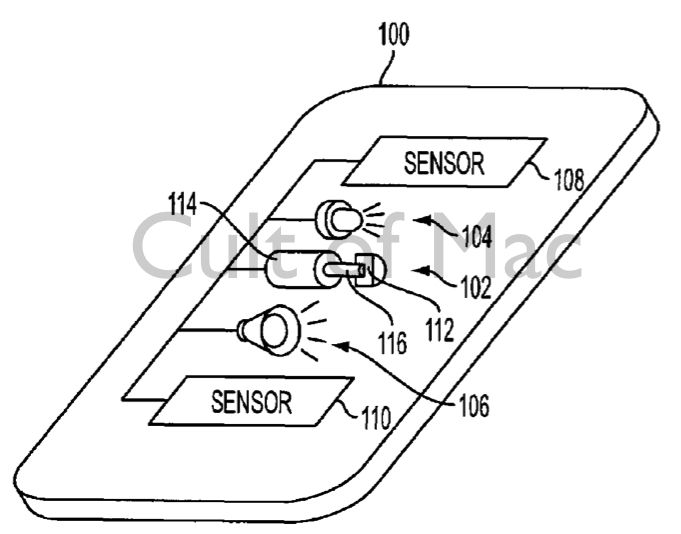 “These miniaturized alert devices may be inadequate to obtain the user’s attention in a variety of different situations,” the patent reads. “For example, if the user of a cell phone is in an environment where there is a great deal of ambient noise, such as a concert or live sporting event, then the user may be unable to see a visual alert from a miniaturized light on the phone, hear an auditory alert from a miniaturized speaker in the phone and/or unable to detect vibration coming from the [watch or] phone’s miniaturized vibration motor. ”
