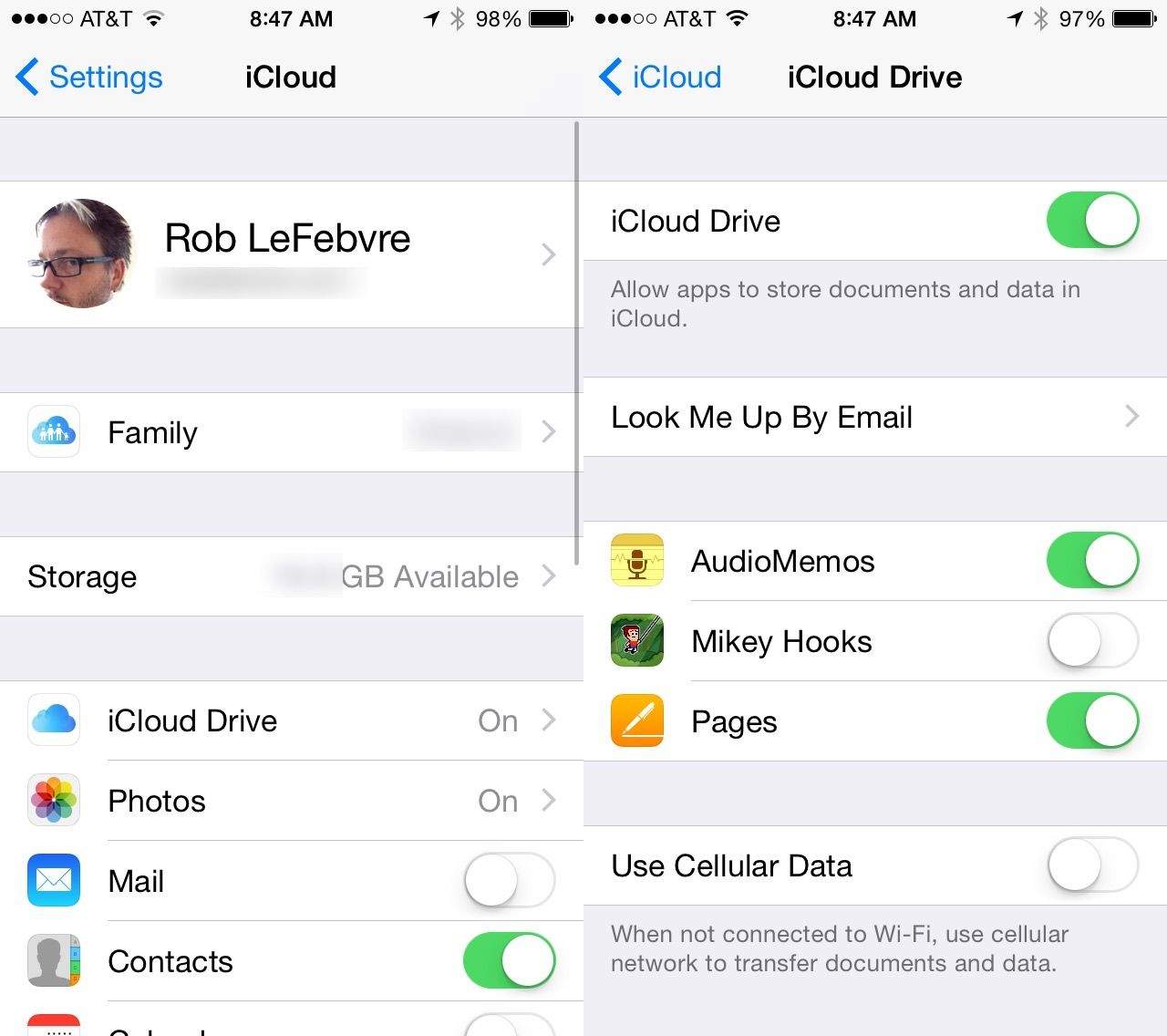 On your iOS 8 device, tap Settings, then iCloud, then iCloud Drive. Toggle the setting to ON, making note of any warnings about needing Yosemite installed, and then you’ll be ready to go. You’ll see a list of apps below that are already using iCloud Drive to store your documents and data. Toggle their access on and off here.