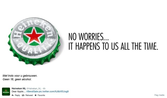 We are three days into the Bendgate controversy, and while Apple says they’re seriously investigating why iPhone 6 Pluses are bending in users’ pockets, the company’s competitors and other brands are piling onto the controversy with a steady stream of bending jokes for the social media masses.