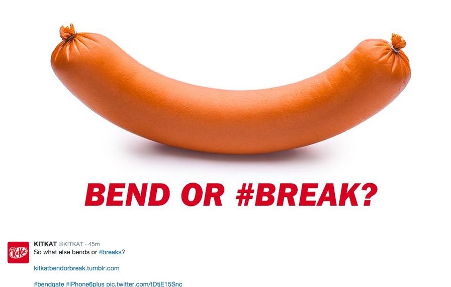 Kit Kat’s social media peeps had a field day with Bendgate, releasing multiple teasers about how non-bendy its offerings are.