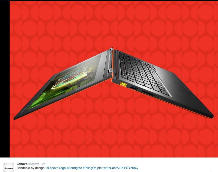 Apple’s biggest competitor in the desktop PC business wanted to make sure Tweeps know its laptops are designed to bend, although I’m sure I could smash it with my hands too.