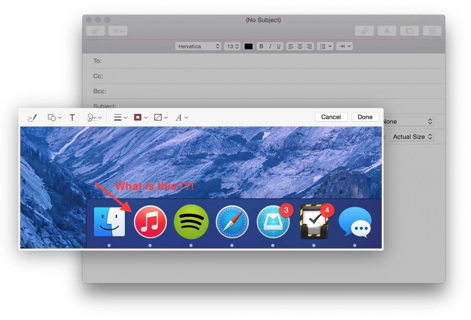 Anyone having issues with Yosemite mail? Cant paste an image into the body of email as usual. It is sent and shows up in my sent as blue question mark?