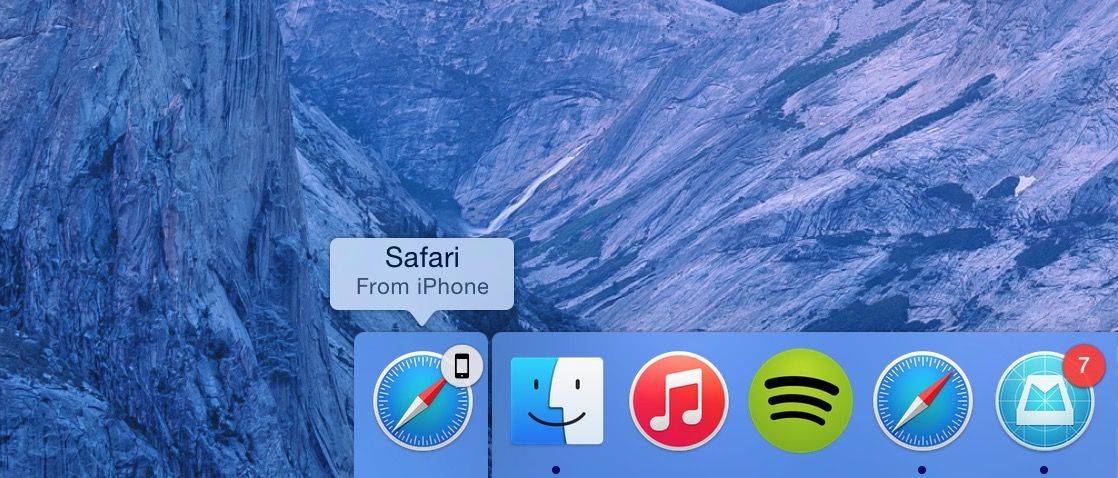 So if you’re composing an email in Mail on Yosemite, the Mail app icon will appear at the bottom of your iPhone’s lockscreen. Tapping it will open Mail in exactly the place you were at on the Mac (and vice versa). iOS apps that are open with Handoff enabled show up at the bottom left corner of the Mac’s dock.