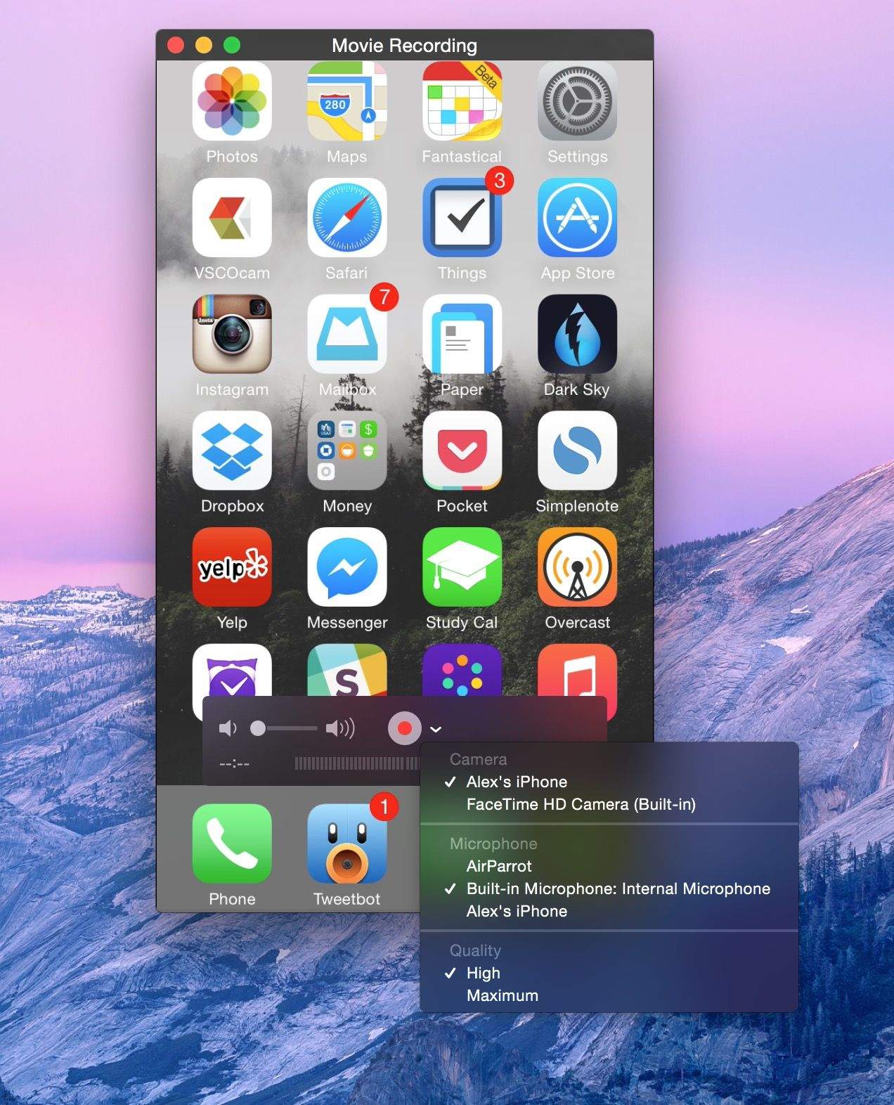 Instead of just your Mac’s screen, QuickTime can now record your iPhone or iPad’s screen when connected via a Lightning cable. When you choose to make a new movie (not screen) recording, tap the dropdown next to the record button to select your iOS device and its microphone as the input.