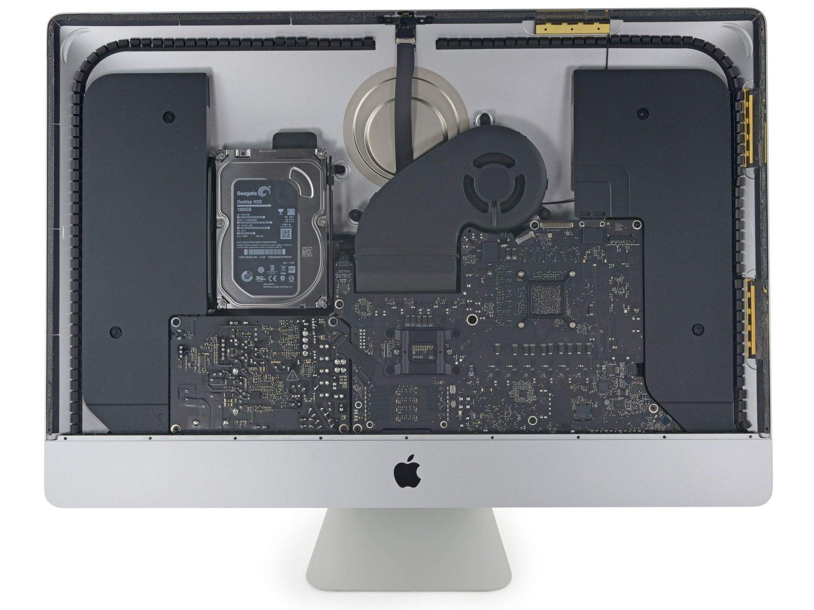“Given its industrious reuse of an old design, the iMac Intel 27″ Retina 5K Display earned the exact same 5/10 Repairability Score as its predecessor,” according to iFixit. “And for the exact same reasons: user-replaceable RAM, hard drive, and CPU are all positives, but a fused LCD and taped-down display glass hinder the would-be repairer.”