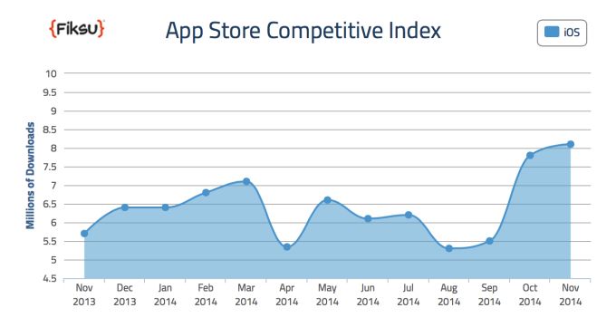 In the month of November, the combination of time off for Thanksgiving and new iPhones resulted in daily app download volume surpassing the 8 million mark for the first time ever. Not only is this is a significant leap from the 7.8 million daily downloads seen in October, but also a massive increase of 42 percent year-over-year, compared to November 2013.