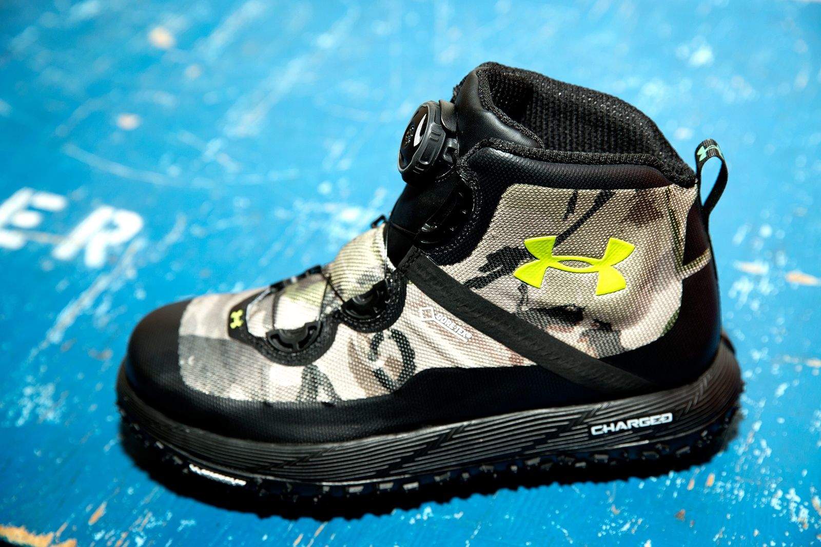 The fat tire bicycle craze has spun up myriad products, including special rims, tires and even bags, but now it has inspired a pair of moon-boot kicks from Under Armor. The shoelike Fat Tire GTX uses rubber from Michelin, a boa closure and Gore-Tex technology to make a waterproof, lightweight trail runner/hiker/rambler with a major quotient of support. Available this fall in a delicious camo, these monster-treaded shoes look even better in person.