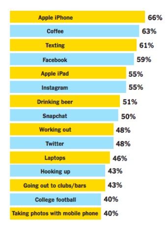 The iPad didn’t do too bad in the survey either, topping Instagram, laptops and selfies. Here’s the rundown on what college students ranked as most important: