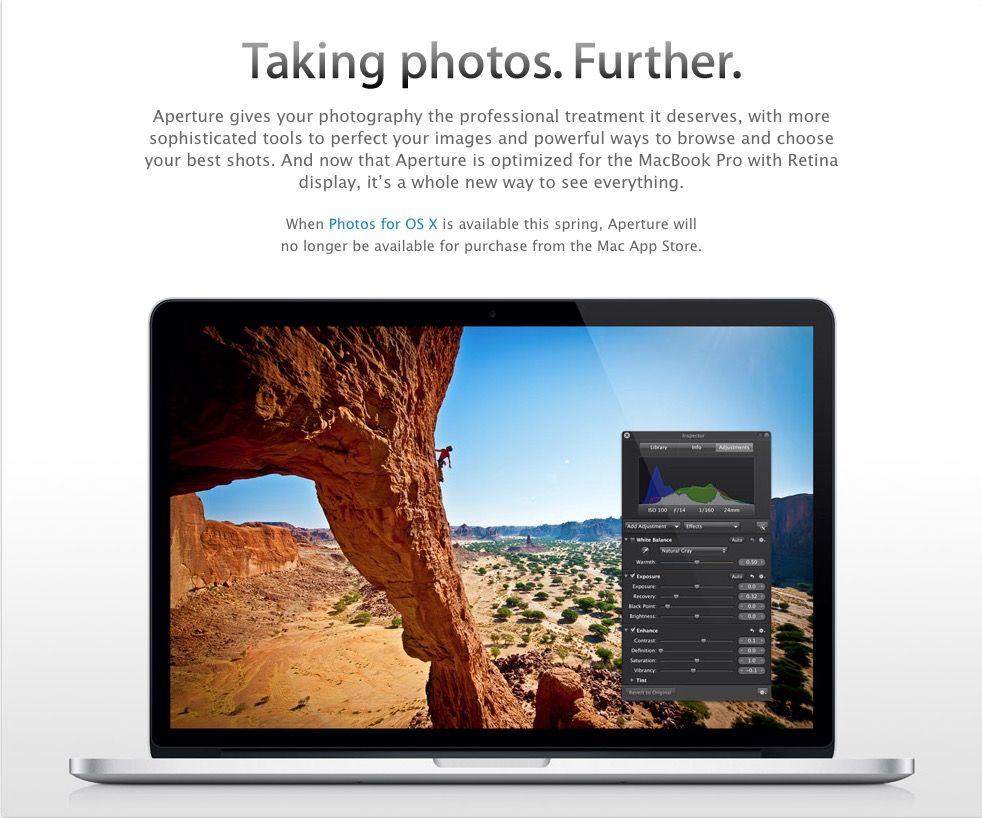 How do we know? Apple has updated its official Aperture website, saying that the app will soon be pulled from all available retail venues.