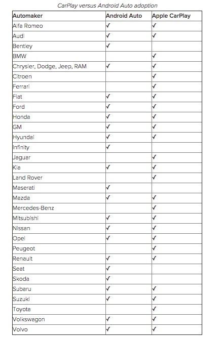 While Toyota’s not so hot on CarPlay, other manufacturers like Ford, BMW, Volkswagon, and GM are more bullish on Apple’s car offerings. Here’s a full breakdown of which service auto makers currently support: