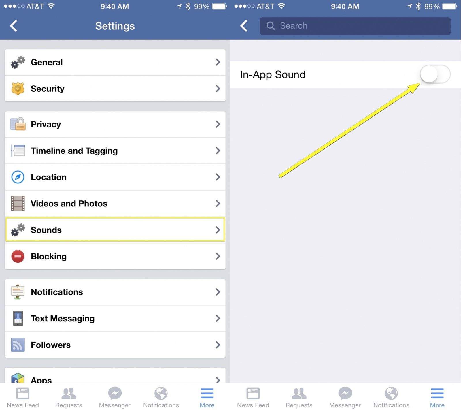 Surely you’d like to turn these things off. You could just mute your whole iPhone with the sound toggle button, but if you want to have other audio come through, like video, music, or (gasp) phone calls, you can dip into your Facebook app settings and soon experience the bliss of a blip-free Facebook browsing experience.