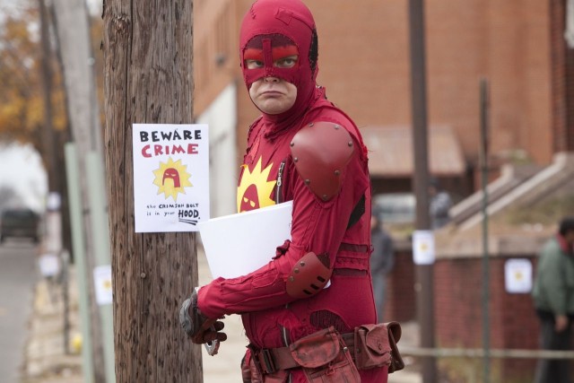 Rainn Wilson (The Office) stars as Frank Darbo/The Crimson Bolt, a masked vigilante whose desire to do good far outweighs his ability. Comic-store clerk Libbie (X-Men: Days of Future Past‘s Ellen Page) becomes his sidekick Boltie, and she isn’t any better at her job than Darbo is. The Crimson Bolt’s crimefighting arsenal consists of a stack of fliers warning criminals not to crime so much and a pipe wrench that he brings to bear on such evildoers as a couple of jerks who cut in line at the movies.