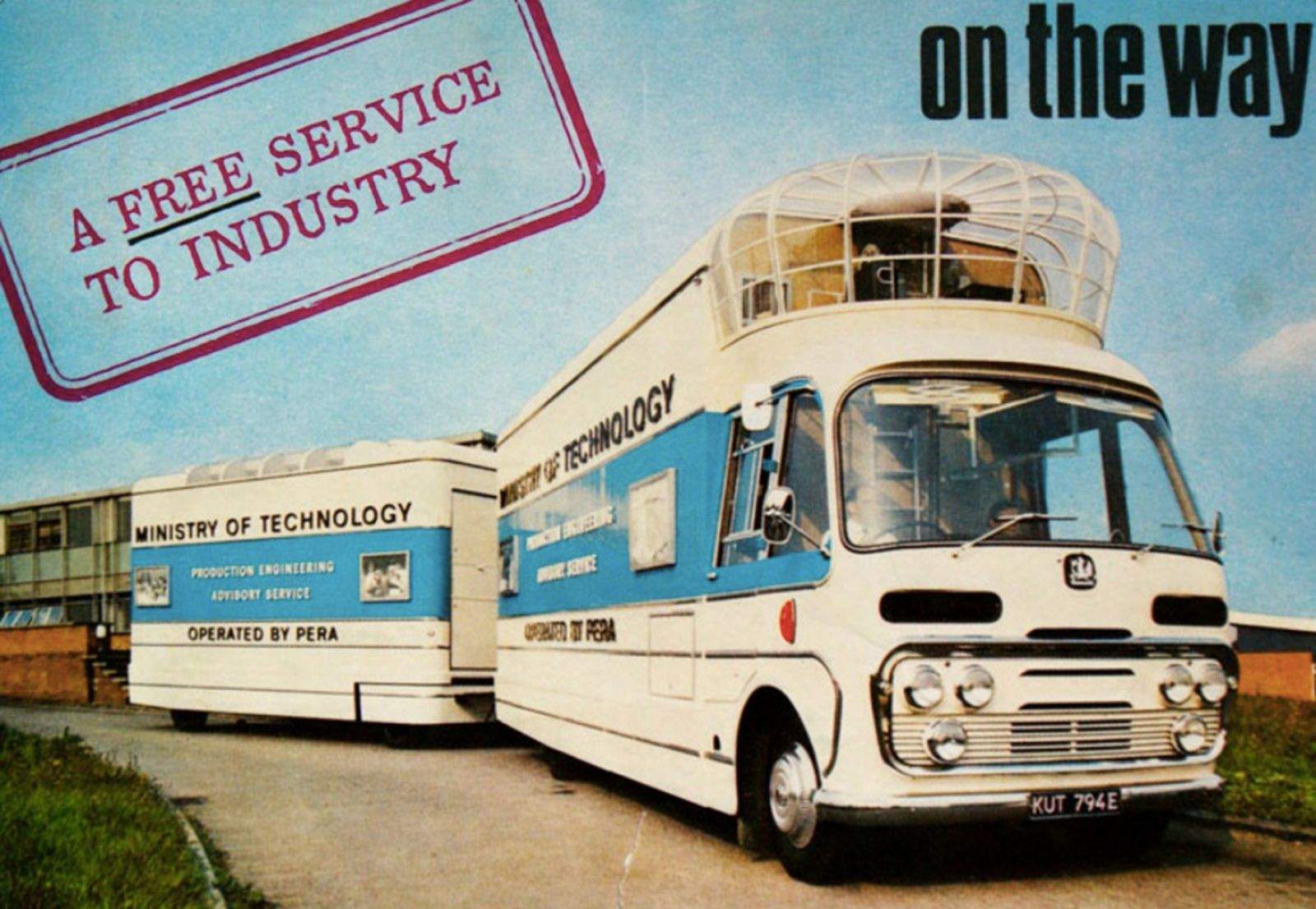 A fleet of seven government buses toured the country during the 1960s, bringing industrial films to companies to promote efficiency and modern production techniques. One survived the scrap heap, was restored and is now on eBay for about $184,000.